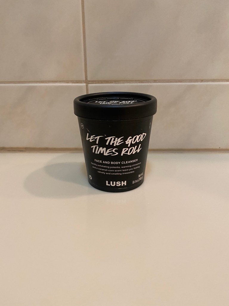 Once I rinse the product off my face, I wash my face again, but the second time I use Lush’s Let the Good Times Roll Face and Body Cleanser. I love that it smells like a mix of cookie dough and popcorn and it feels really nice on my skin.